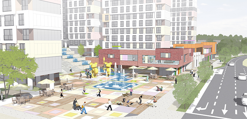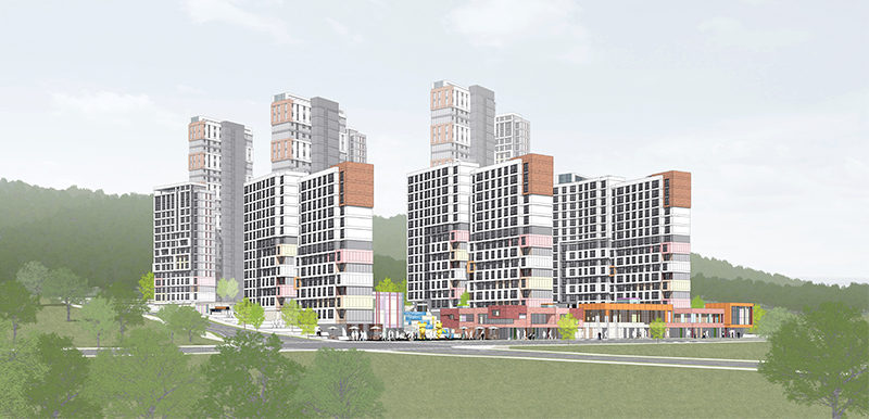 자연을 단지의 마루광장으로 유입하고, 유입된 자연을 도심으로 공유하며, 상호소통과 교류의 맞춤형 단지를 계획한다.