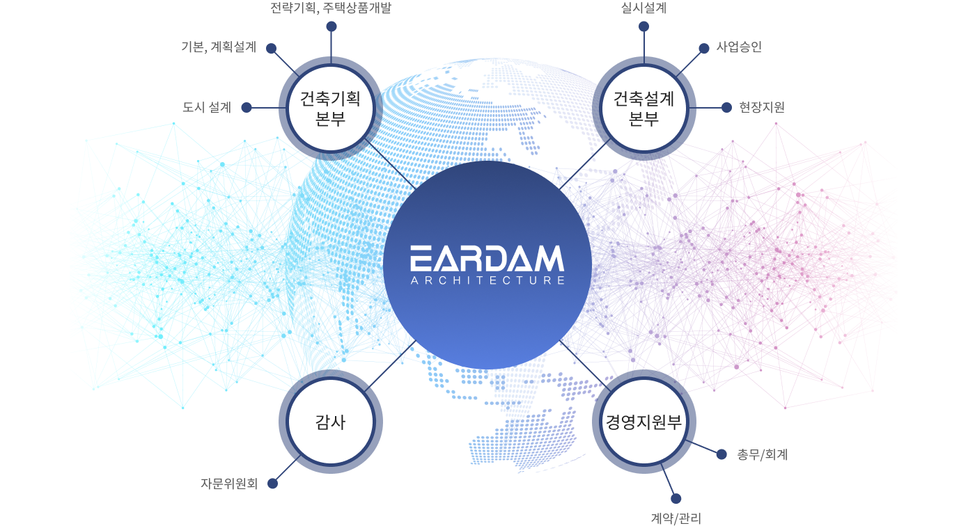 또한, 집합체를 이루는 각각의 직원들은 일반건축, 주거 등으로 특화 운영되며 해당 분야에 다양한 경험과 최고의 기술력을 겸비한 PM들은 각각의 유기적 개체들이 진취적인 방향으로 전진할 수 있도록 이끕니다.